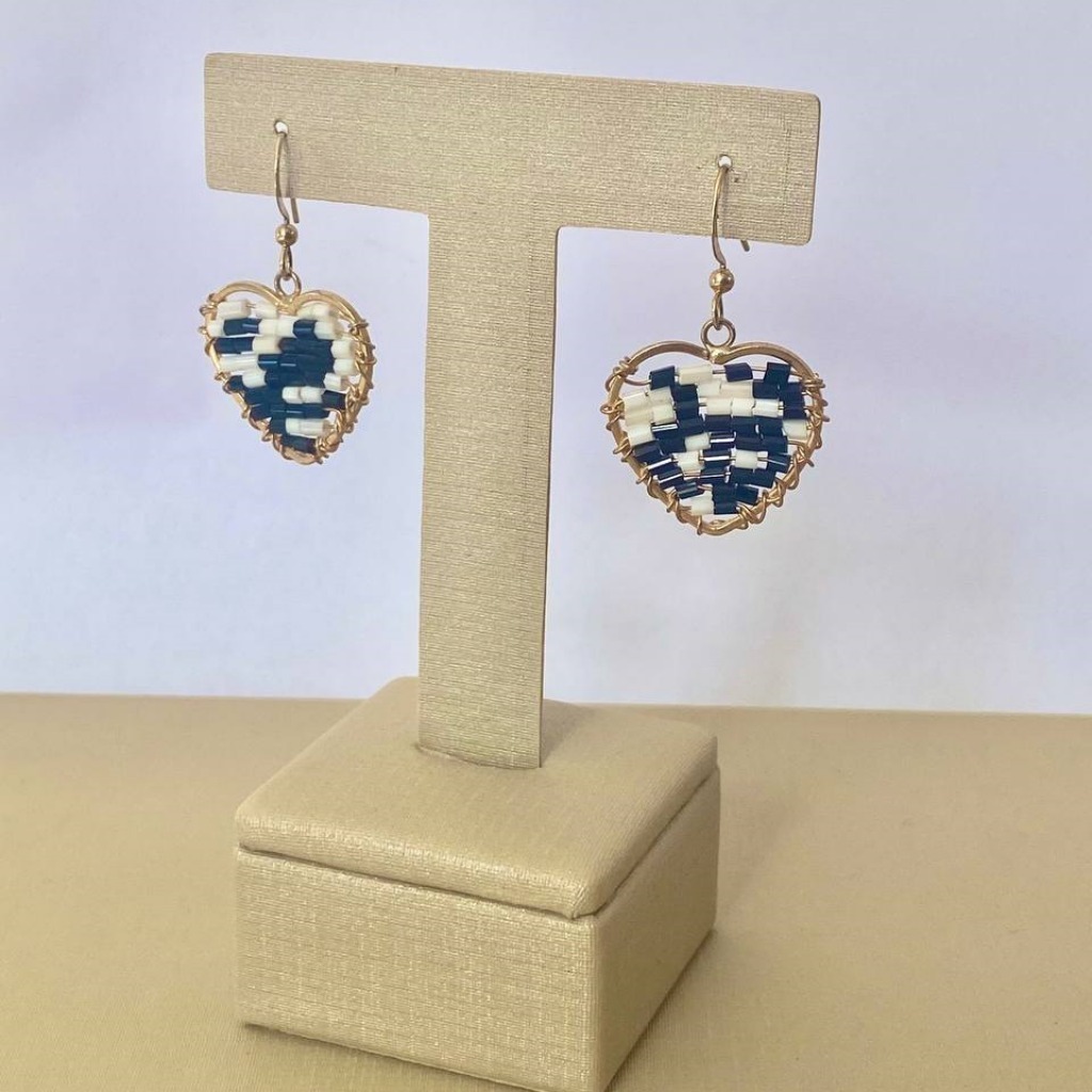 BRINCO ARTESANAL CORAÇÃO PRETO E BRANCO BANHADO A OURO 18K
