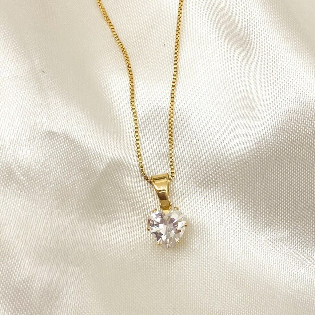 Colar com pingente de coração em zirconia banhado em ouro 18k