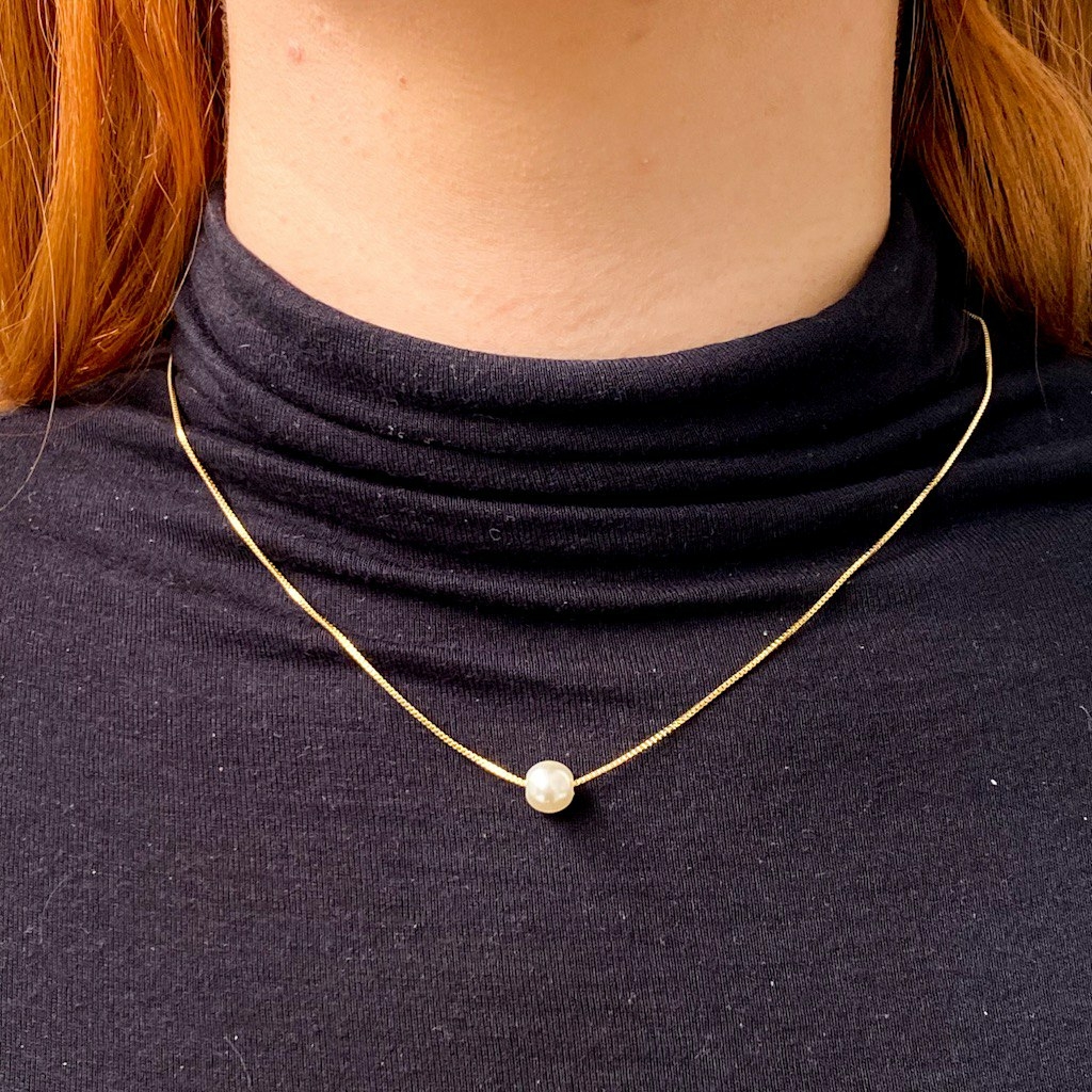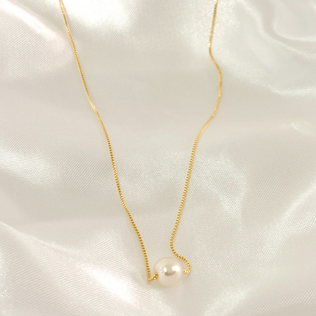 Colar com pingente de pérola banhado em ouro 18k