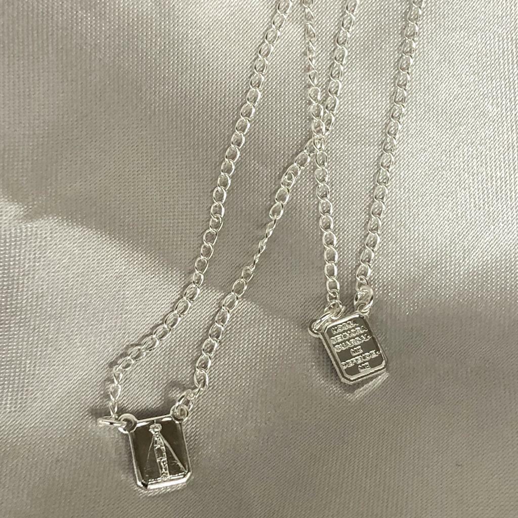 O colar escapulário de Nossa Senhora Aparecida banhado a prata é uma peça elegante e devota. Com medalhões que retratam a imagem de Nossa Senhora Aparecida, simbolizando proteção e fé, o acabamento prateado adiciona um brilho sofisticado. Ideal para quem valoriza acessórios com significado espiritual, este colar combina beleza e devoção de forma refinada.