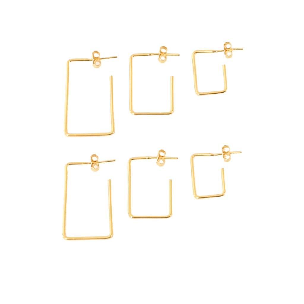 Trio de brinco de argola quadrada com tarracha banhado em ouro 18k